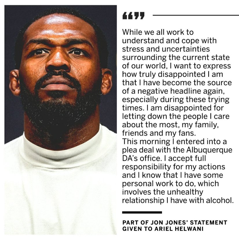 Jones released a statement after news of the plea became public, apologising for his latest indiscretions: