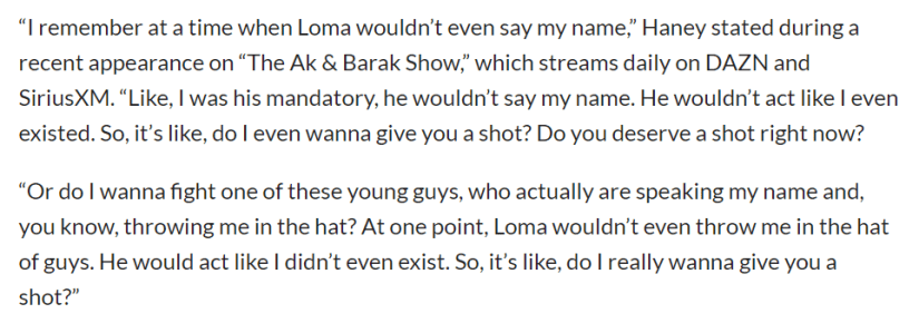 Meanwhile, WBC champion Devin Haney said last week that he’ll fight Javier Fortuna or Jorge Linares next if there’s no lightweight unification bout agreed with Lopez next. Those are the four brightest names across the division, which further highlights Lomachenko’s waning powers.