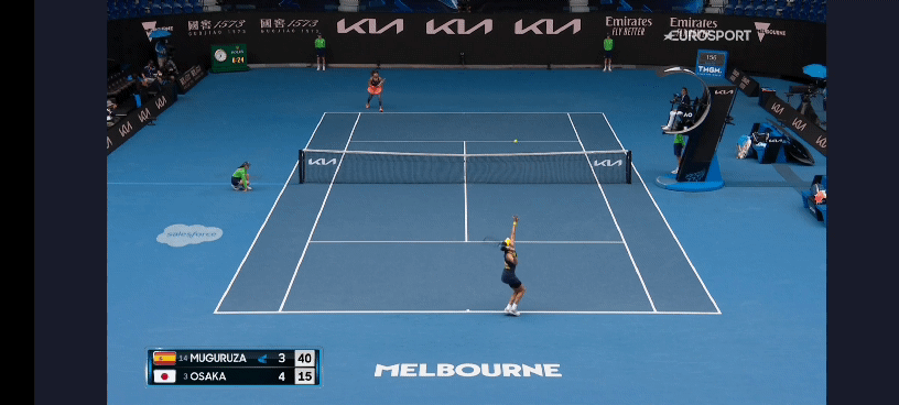 Muguruza had to save a break point (2-2), before Osaka was facing two in the very next game and could have no complaints after a self-inflicted sequence of events. More serving inconsistency and poor shot selection allowed Muguruza to snatch points like these in quick succession: