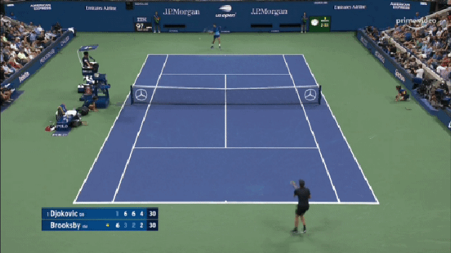 Brooksby kept his tennis clean and relatively error-free, still with half the unforced error count (16 to Djokovic’s 32) at one point midway through set three, but while Novak’s forehand was letting him down, it was clear he had found his striking range.