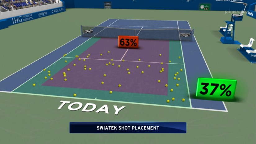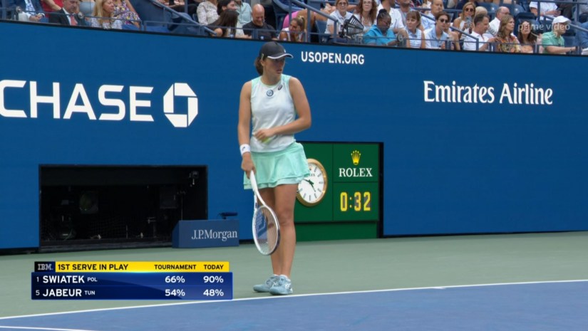 Swiatek (first serves in: 19/21, 90%, won 63%) — Jabeur (10/21, 48%, won 20%)