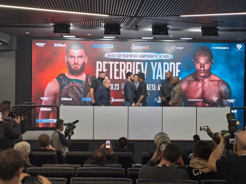 He refused to make a prediction, insisting people should tune in – while Beterbiev said he might have a perfect knockout record but that they were essentially all predicated on luck that he prepares for through training. He’ll try to be lucky for the 19th consecutive time next month.