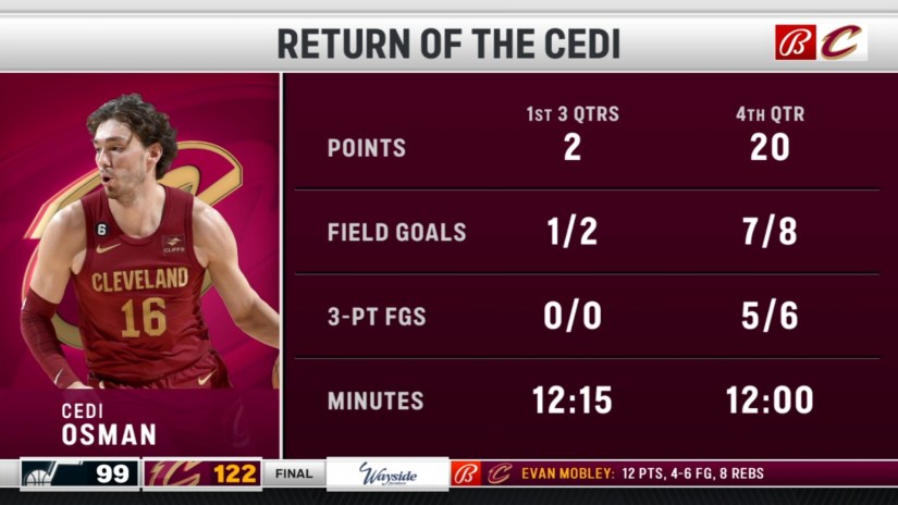 Kevin Love and Caris LeVert produced effective minutes with the second unit in different ways, the latter a spark plug with his scoring while Love was a pest grabbing 10 rebounds and made important defensive interventions at a time where Utah threatened to surge from behind.
