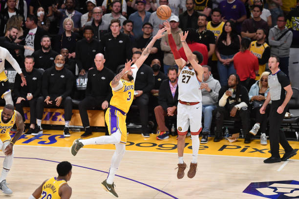 The general rule of thumb with Jokic is, if hitting threes the way he did on this occasion, it’s game over. His first came with 8:43 remaining in the second quarter, a heavily contested high-arcing shot over LeBron James with the shot clock expiring.