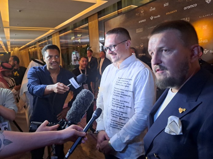 Usyk was in good spirits after flying in on Friday and naturally swatted away questions such as whether he had any nerves, for he’s not the one boxing a fearsome puncher – making his debut in the discipline or not – while declaring he’s already in Fury’s head as the mind games continued at the gala dinner.