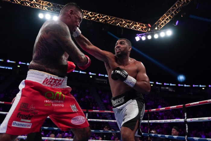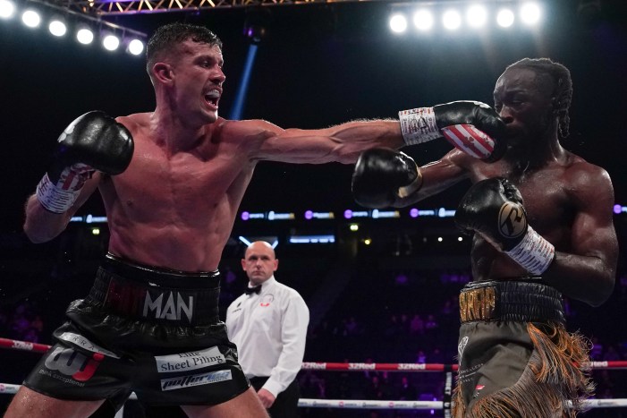 He began the third furiously landing bombs and got the better of their gritty exchanges, Scarff suddenly stumbled down and needed referee Howard Foster’s help to reset himself as the champion found his groove in the middle rounds.