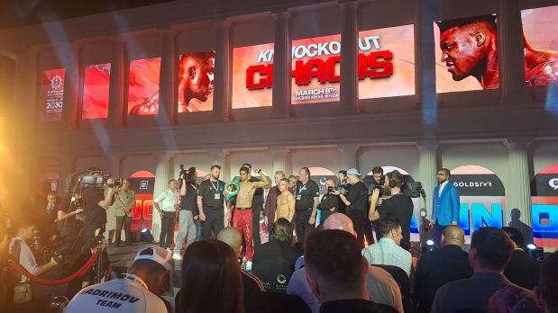 The WBO interim world champion walked onto stage with a carefully-curated remix of Funky Dee’s Are You Gonna Bang Doe song with Joe Joyce, Parker and himself all mentioned to the crowd’s amusement, before being sharp and sweet on the mic: “Hard work’s finished. I’ll see you tomorrow, a win puts me right on the top.”